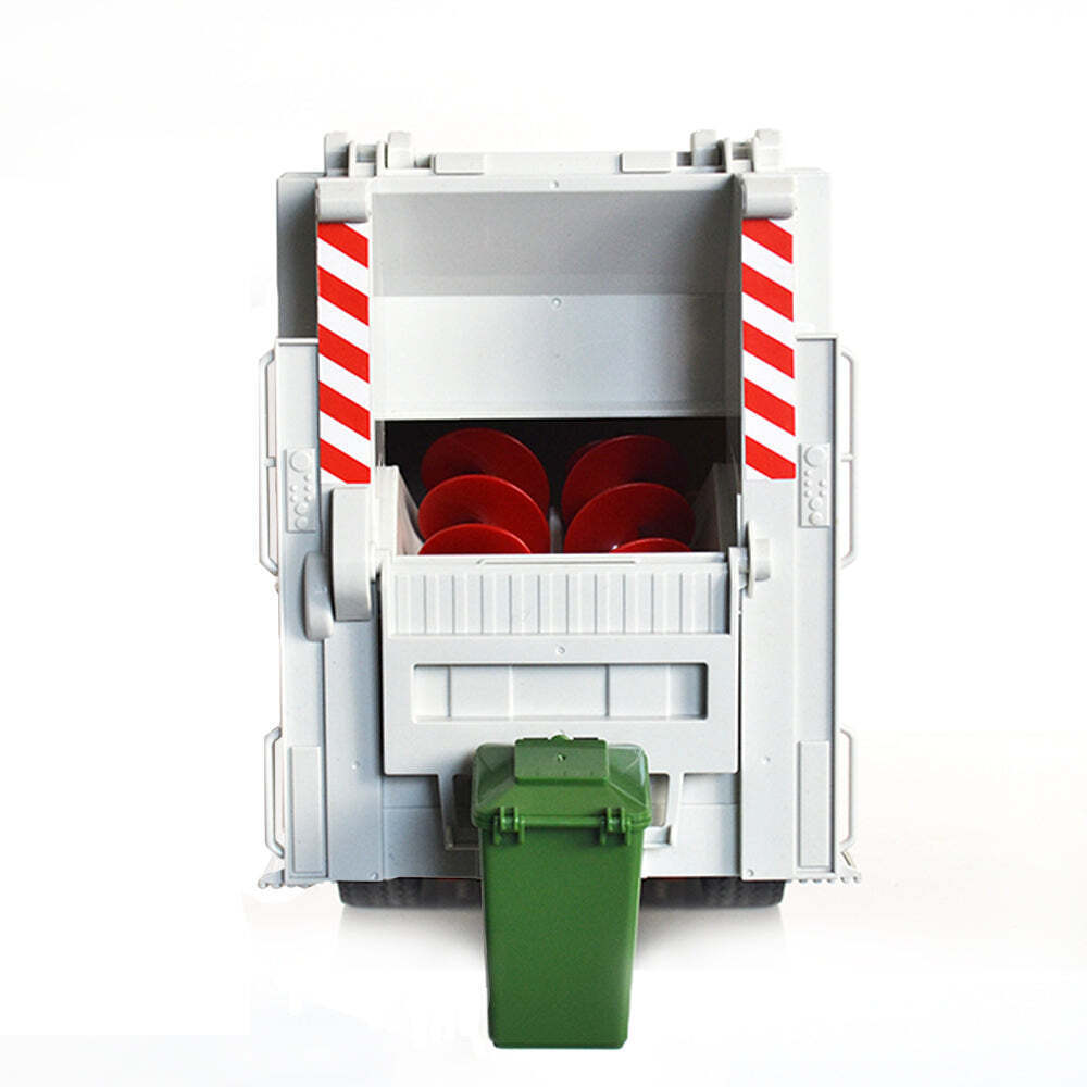 This powerful RC Mercedes-Benz Garbage Truck travels forward, backward, left and right. Enjoy lifting the included green garbage bin up and down, simulating a real garbage collection experience. After garbage collection, the garbage rabbling will stir in a clockwise and counter-clockwise turn.