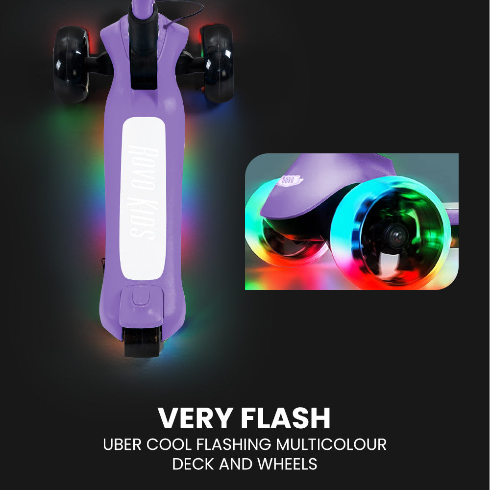 ROVO KIDS 3-Wheel Electric Scooter, Ages 3-8, Adjustable Height, Folding, Lithium Battery, Purple
