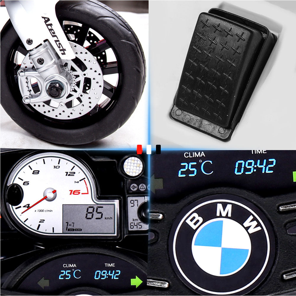 Presenting the S1000RR Ride-On Motorcycle, licensed by BMW. In the true spirit of this iconic motorbike, this model boasts both luxurious and sporty detailing that characterise the actual full-size motorcycle.
